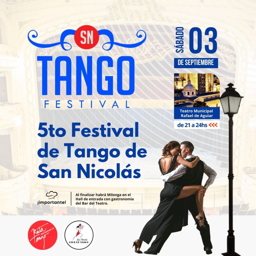 Tengo el agrado de contarles que el Sábado 3 de Septiembre realizaremos la 5ta Edición del Festival de Tango de San Nicolás. Retomamos después de dos años sin poder llevarlo a cabo por pandemia covid, haciendo fuerza con una grilla Artística casi totalmente local que más tarde les voy a presentar. Los esperamos en el Teatro Municipal de nuestra ciudad a todo Tango.