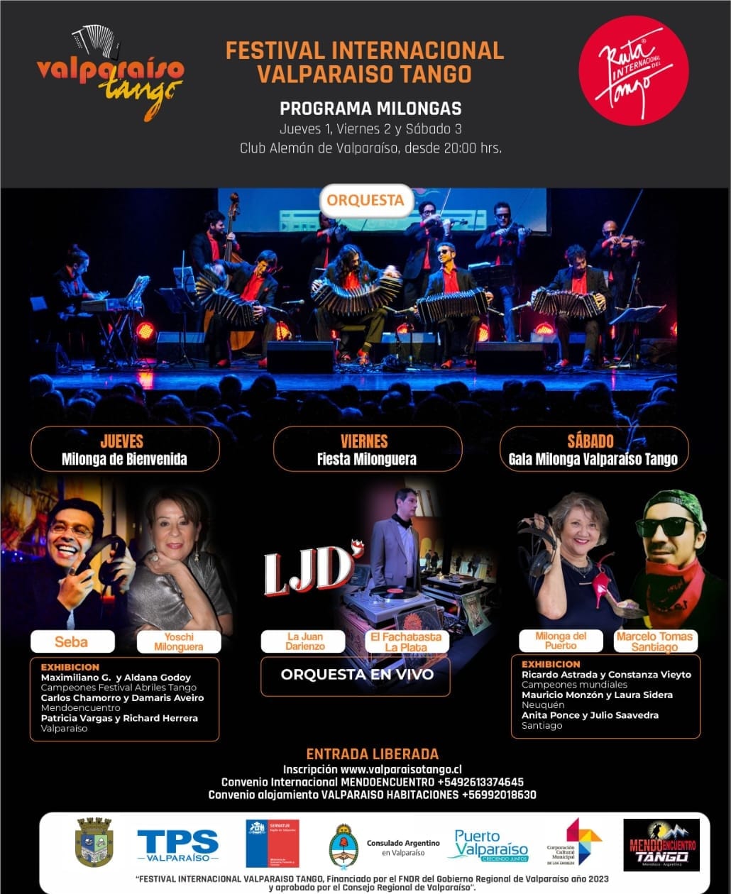 Todas las actividades del FESTIVAL VALPARAISO TANGO, son liberadas, para las clases no requiere inscripcion previa, para el teatro Municipal, las puedes retirar en boletería a contar del 20/1/24, para las milongas inscripcion en www.valparaisotango.cl