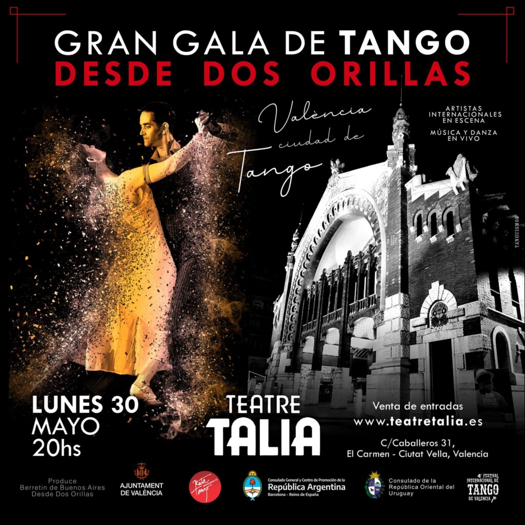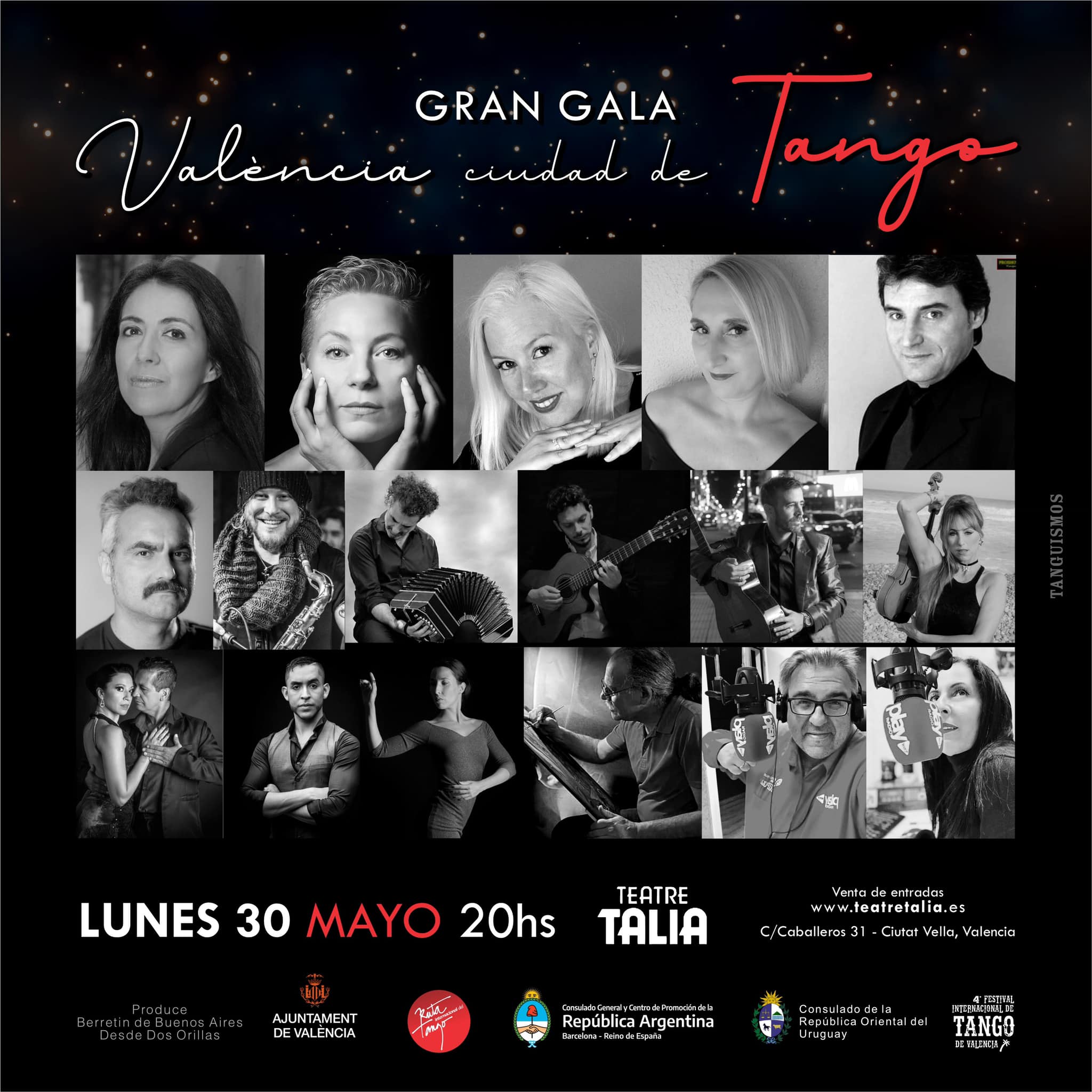 Cantantes: Analia Bueti, Graciela Di Palma, Nadia de Buenos Aires, Mª Ángeles Utiel, Nelson Scarlatto, Baile Ginette Montenegro e Iván Romero Débora Godoy y Carlos Guevara Músicos Cecilia Pekarek (Las Rositas – Viola) Mariano Siccardi (Piano) Moscato Luna (Guitarra) Martín Perdomo (Guitarra) Carlos Máñez (Saxo) Luis Caruana (Bandoneon) Arte fileteado en vivo: Alejandro Di Rosa Maestr@s de ceremonias: Ana Msr Vila y Vicente Alventosa (@playradiovlc )30 de Mayo – 20:00 hs.Teatre Talia de ValenciaEntradas anticipadas a la venta: https://www.teatretalia.es/gran-gala-de-tango