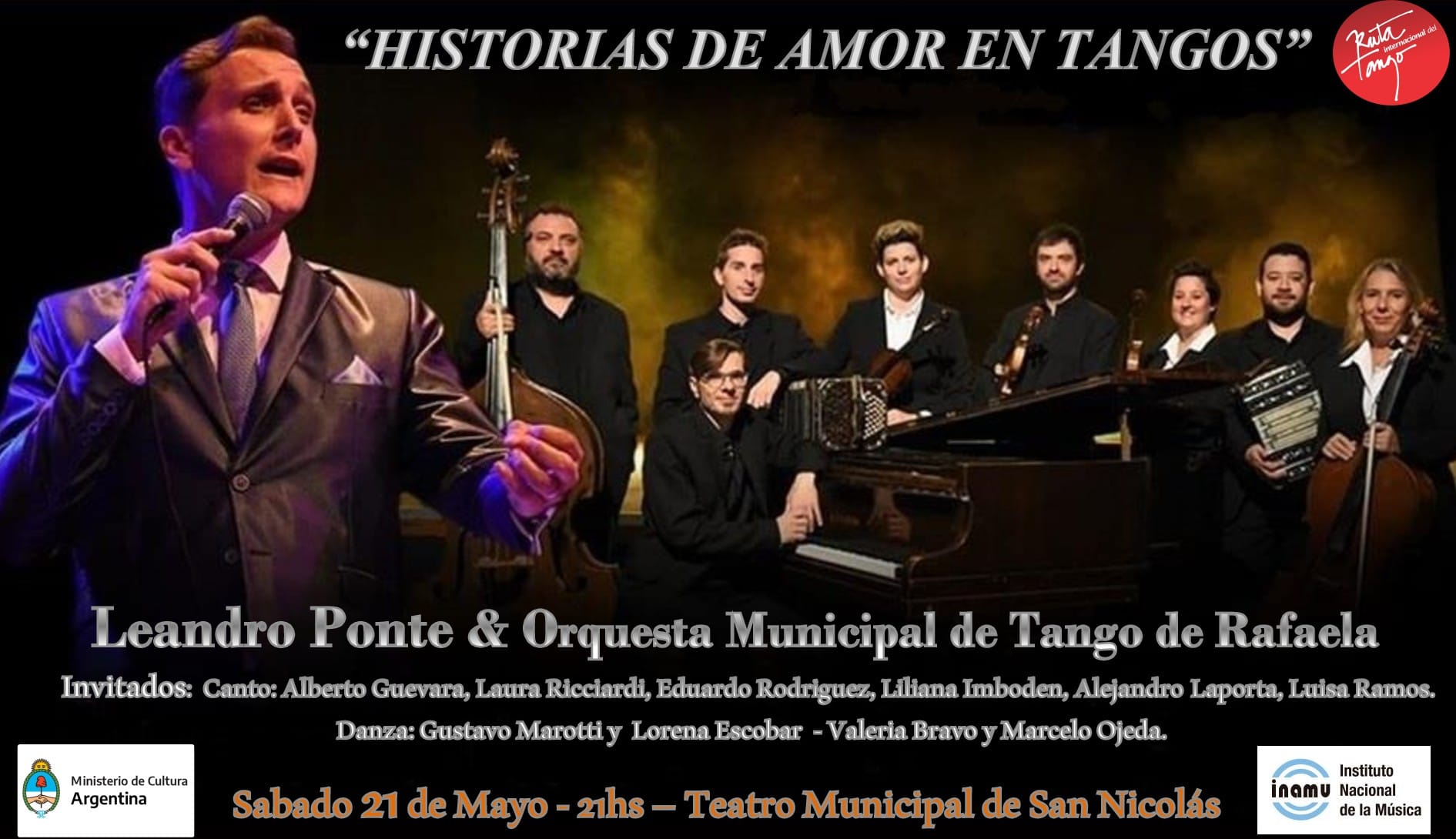 Feliz de anunciar que fue seleccionada por el INAMU mi propuesta «Historias de amor en Tangos» presentación de mi último trabajo discográfico. En esta ocasión elegí presentarlo junto a la Orquesta Municipal de Tango de Rafaela Municipalidad de Rafaela Secretaría de Cultura de Rafaela dirigida por el maestro Claudio Duverne quién me dió la oportunidad de cantar varias veces con esta maravillosa formación y que estará por primera vez en nuestro Teatro Municipal De San Nicolás Teatro Municipal Rafael de Aguiar . Cómo invitados se sumaron dos excelentes parejas de bailarines Nicoleños, Gustavo Marotti Tango con Lore Escobar y Marcelo Ojeda con Valeria Bravo . Y también los cantantes Alberto Guevara , Laura Ricciardi Tango , Eduardo Javier Rodriguez , Liliana Imboden , Alejandro Adolfo Laporta y Luisa Ramos . Será una imperdible velada Tanguera con 18 artistas en escena desplegando toda su magia en la música con instrumentos en vivo (dos bandoneones, tres violines, chelo, contrabajo y piano), el canto y la danza que nos representa en el mundo. Una imponente puesta en escena con imágenes en pantalla, sonido e iluminación de primer nivel. Entradas a la venta en boletería del teatro. (Apoya la música en vivo antes que se termine