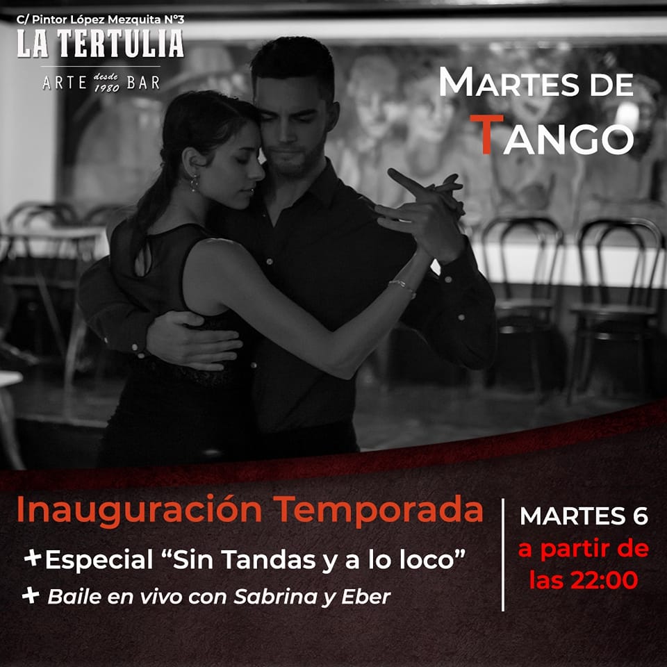 » La Tertulia « Inauguración temporada Empezamos el martes 6 con la fiesta inaugural.Con Sin tandas y a lo loco con DJ «Bomberto» y temas a la carta.Y con baile en vivo de @sabrinayeber.tango