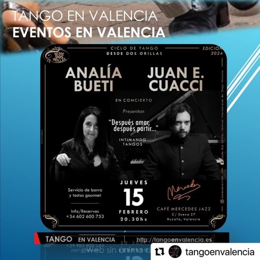 Recibimos en Vaencia al músico argentino, arreglista y compositor JUAN ESTEBAN CUACCI, quien junto a la cantante de tangos ANALÍA BUETI, nos llevarán por el universo inmenso de la música la canción y la poética de un seleccionado repertorio de Tangos, valses y milongas.