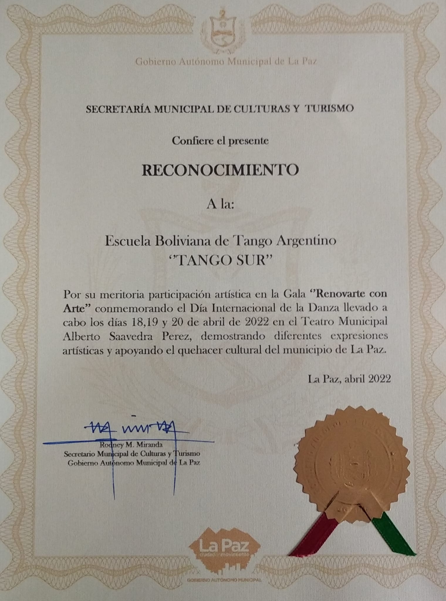 TANGO SUR – SMCyT – CIERRE DE LAS GALAS DE ASOADANZ POR EL DIA MUNDIAL DE LA DANZA Y RECONOCIMIENTO DE LA SECRETARÍA MUNICIPAL DE CULTURAS Y TURISMO A INTEGRANTES DE LA ASOCIACIÓN DE ARTISTAS DE LA DANZA
